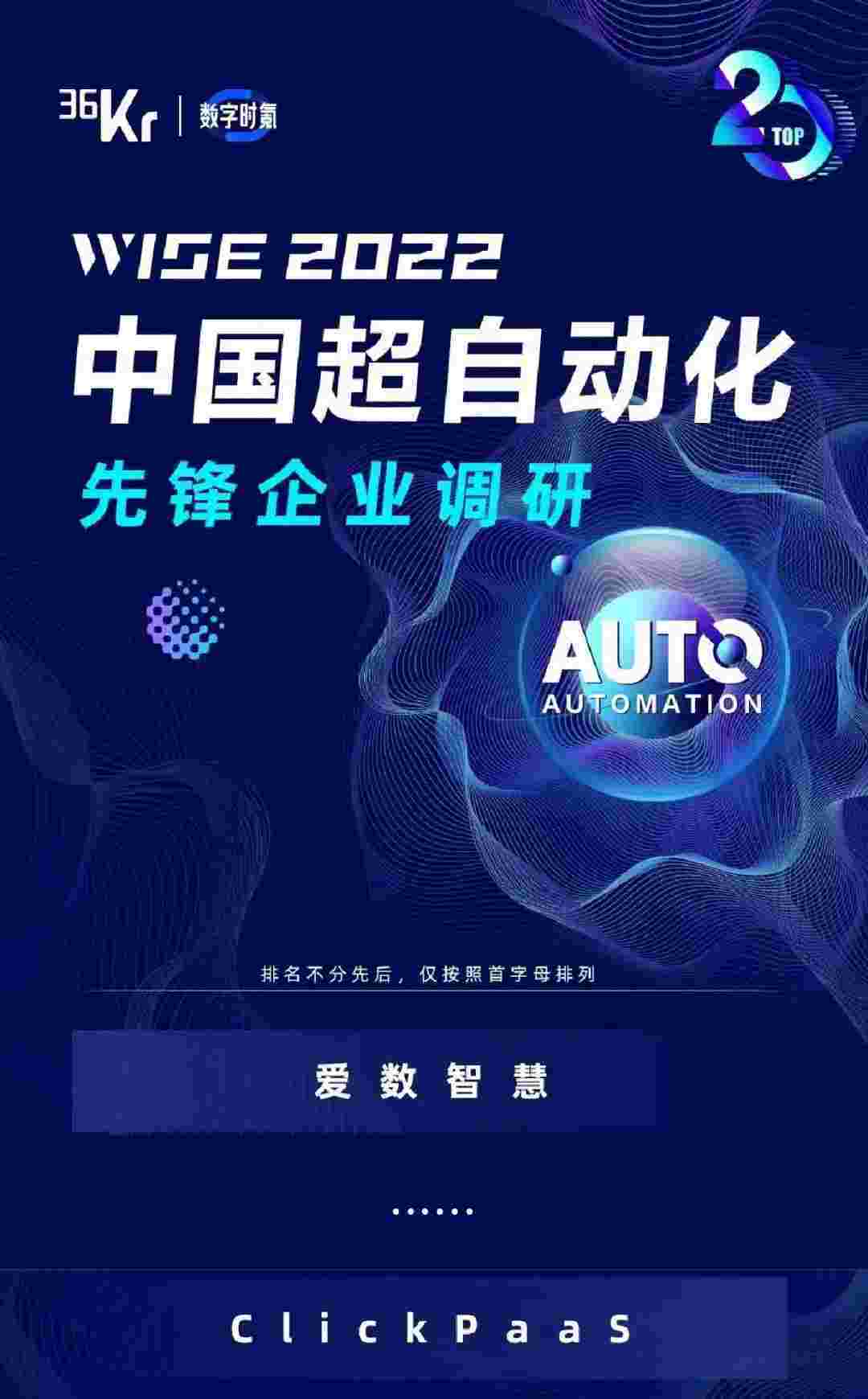 重磅 | NO钱包入选36Kr「2022年中国超自动化先锋企业20强」