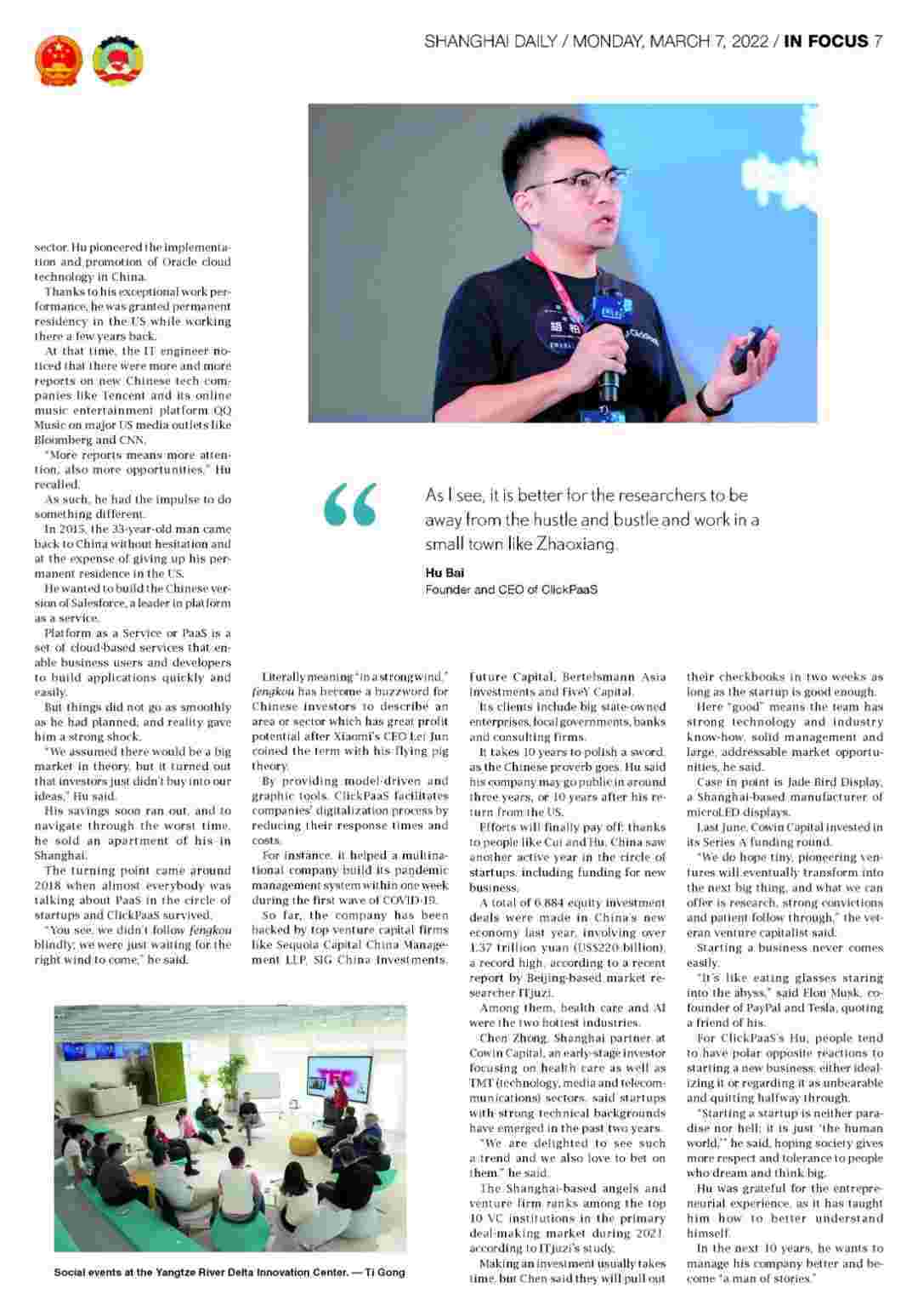 近日,,,,,,,,NO钱包创始人、、、、、CEO胡柏接受了《上海日报》采访,,,,,,,,,,关于自己当初为何选择创立NO钱包,,,,,,,,又为何将公司落户于上海青浦,,,,,,分享了其背后的故 事。。。。